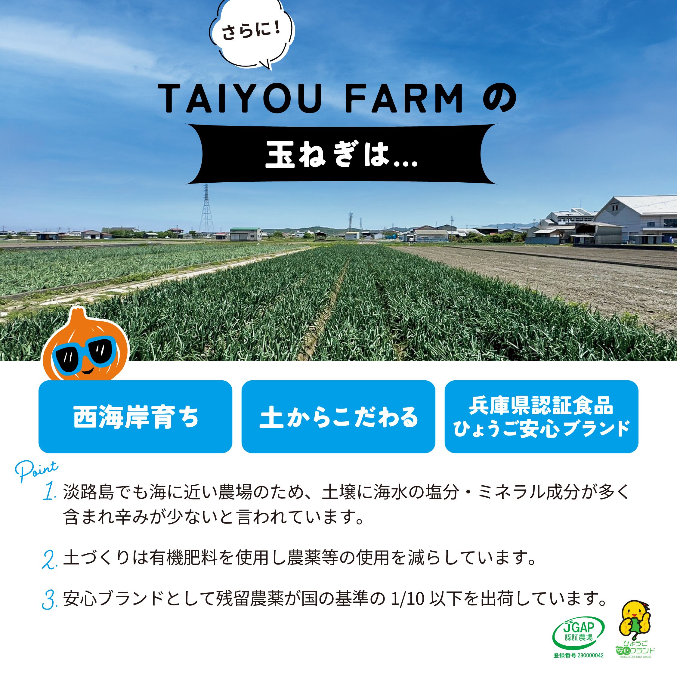 淡路島でも海に近い農場のため、土壌に海水の塩分・ミネラル成分が多く含まれ旨味がギュッと詰まった辛みの少ない玉ねぎとなっております。